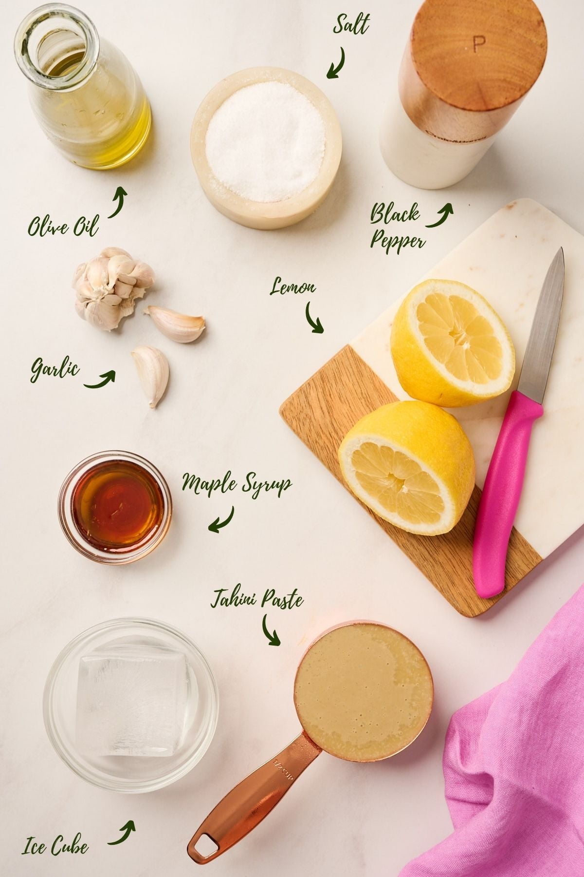 Ice Cubes or Ice Water: This is the step that transforms the texture. Cold water helps emulsify the tahini, suspending the fat molecules and creating a whipped, velvety consistency. Never use warm water it can cause the dressing to seize or separate.